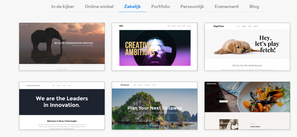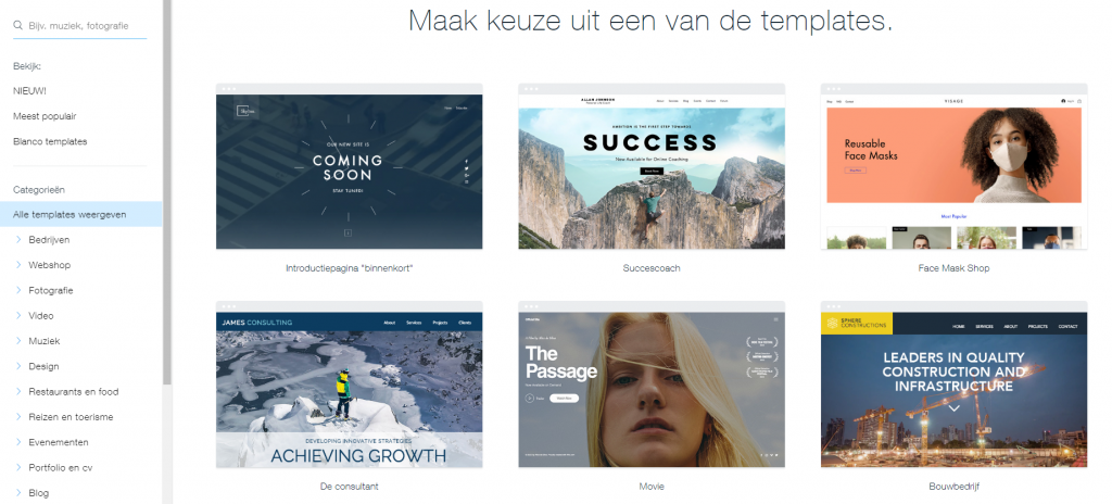 Wix heeft veel templates waar je uit kan kiezen. Het nadeel is wel dat het lastig van thema is veranderen als je eenmaal een website hebt gemaakt.