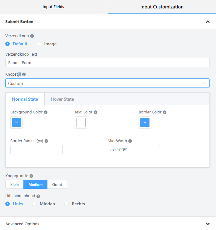 Stijl: je kan met deze plugin de styling niet veranderen in de instellingen. Wil je bijvoorbeeld de kleur van de verzendknop aanpassen, zal je dit moeten doen met CSS.