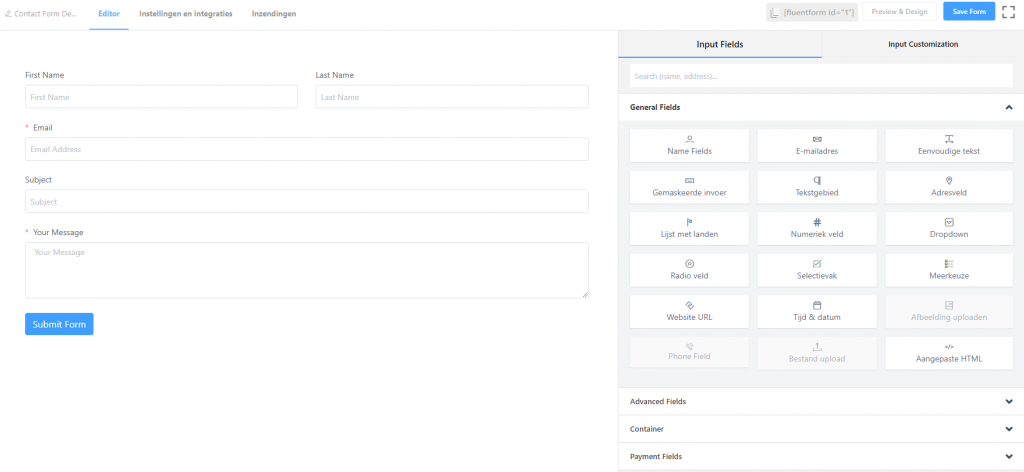 Het aanpassen van een contactformulier is ook eenvoudig door middel van velden te verslepen.