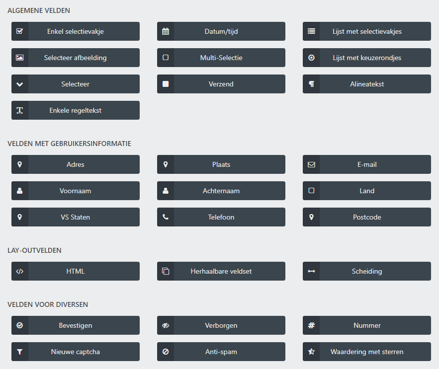 Aantal velden: met Ninja Forms heb je keuze uit 28 velden.