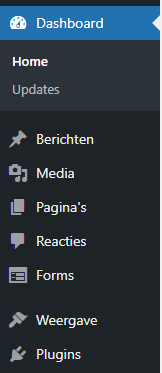 Nadat je de plugin hebt geïnstalleerd en geactiveerd verschijnt de plugin in je dashboard in het zwarte menu aan de linkerkant.