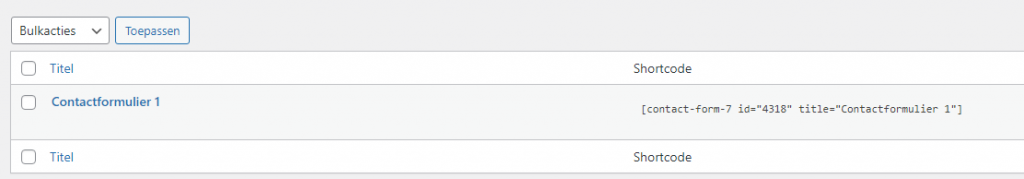 Ieder contactformulier heeft zijn eigen shortcode voor het geval je verschillende contactformulieren gebruikt.