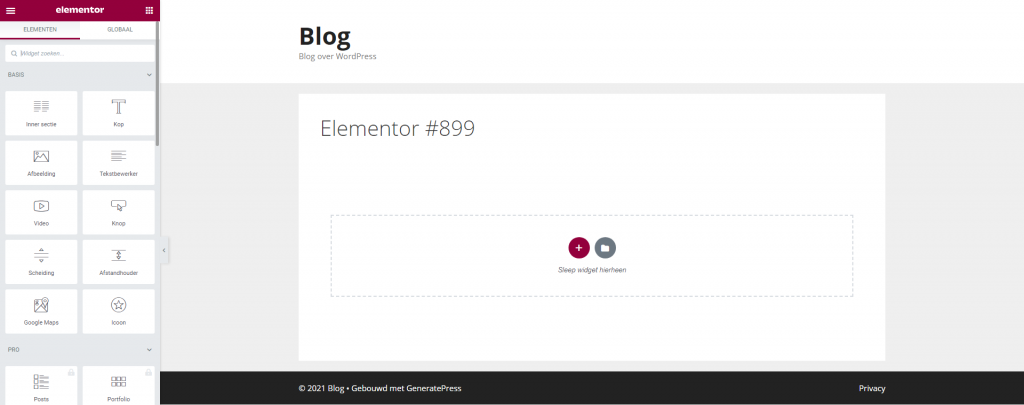 Je kan een of meerdere blokken toevoegen en zo je pagina opbouwen met door Elementor gestylde blokken.