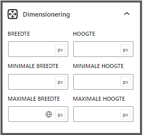 Het is mogelijk om de afmetingen van een element in te voeren.