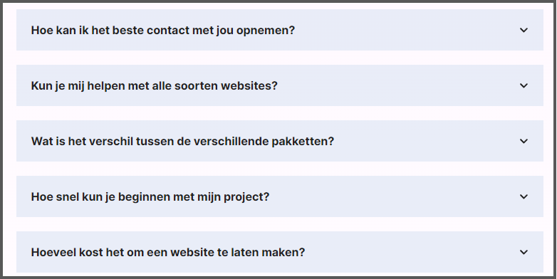 Met GenerateBlocks Pro krijg je de beschikking over een Accordion blok. Dit kan je gebruiken voor ‘uitklapbare content’. Ik gebruik dit zelf bijvoorbeeld voor mijn FAQ.