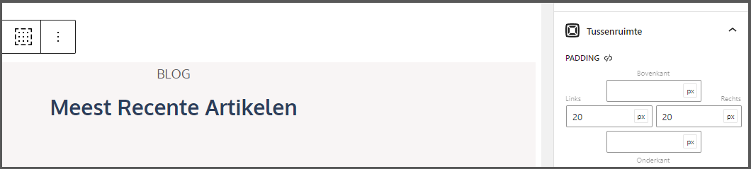 Je kunt hier vervolgens kiezen uit een van de containers die je hebt gemaakt in de Global Styles en de stijl wordt meteen overgenomen. In dit geval dus de padding, waardoor je dit niet steeds handmatig hoeft te doen.