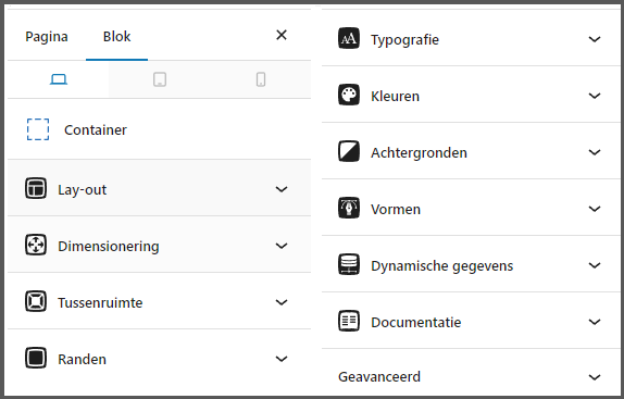 Een container blok gebruik je dus om structuur aan een pagina (of bericht) te geven.
