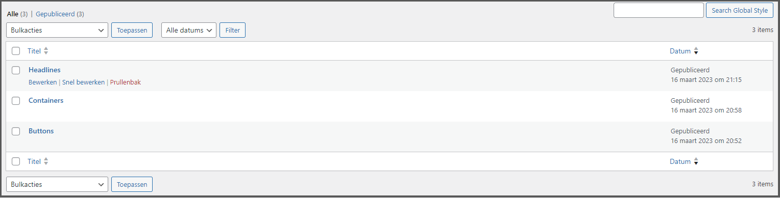 Toch is dit een functionaliteit die ik in de praktijk niet echt gebruik, omdat mijn voorkeur uit gaat naar Global Styles.