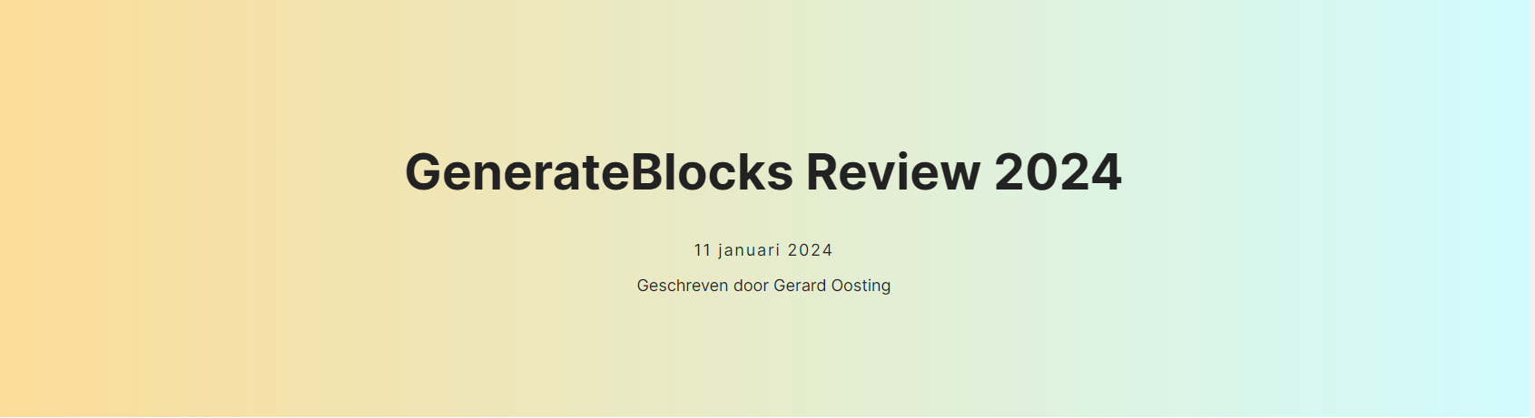 Als je een willekeurig bericht op mijn blog bekijkt dan zie je bovenaan een gradiënt achtergrond met daarin een titel, de berichtdatum en de auteursnaam.