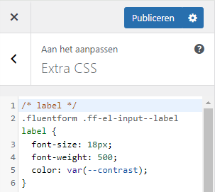 Je kunt de verschillende opties selecteren en je ziet direct in het scherm ernaast hoe dit eruit komt te zien indien je op publiceren klikt.
