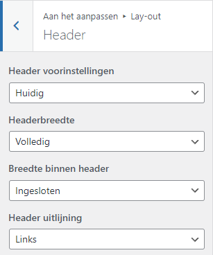Om te laten zien hoe dit werkt zal ik als voorbeeld de Lay-out instellingen van de header verder toelichten.