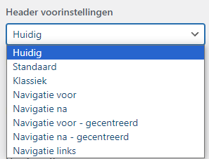 Je header is de plek op je website waar je site logo en menu items staan. De term ‘Header voorinstellingen’ zal je waarschijnlijk niet meteen iets zeggen.
