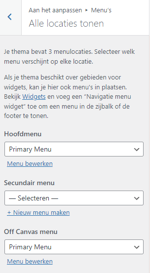 Nu volgt een korte toelichting wat je kunt aanpassen aan je website in de Customizer.