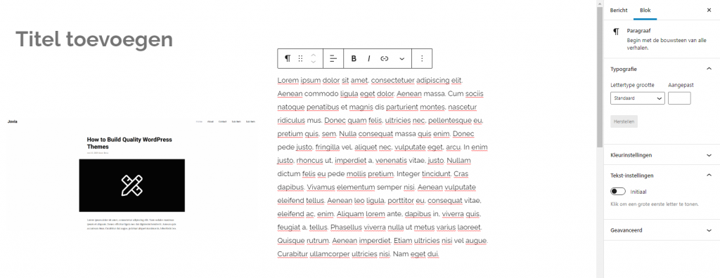 Eerst zal ik kort toelichten hoe Gutenberg eruit ziet en waar je wat kan instellen. Zodra je een pagina of bericht opent wordt de Gutenberg editor geopend.