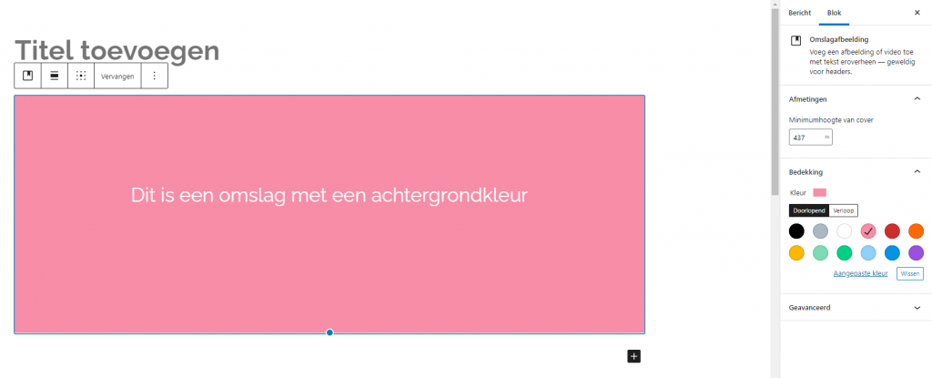 Je kan aan de onderkant eenvoudig de grootte van de omslag aanpassen door de omslag te verslepen of door bij de blokinstellingen de minimumhoogte aan te passen.