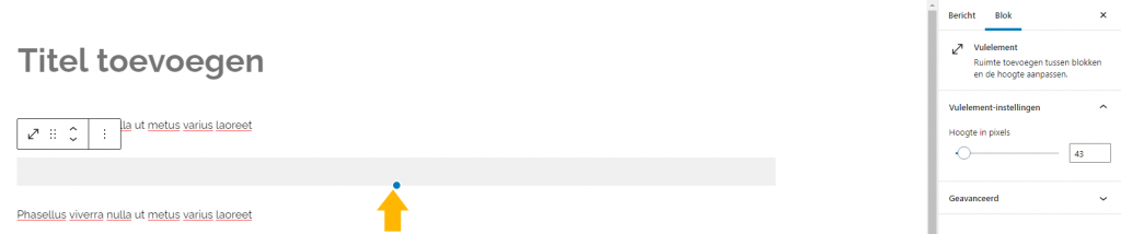 Je kan de hoogte van het vulelement eenvoudig verslepen aan de onderkant of bij de blokinstellingen de hoogte in pixels aanpassen.
