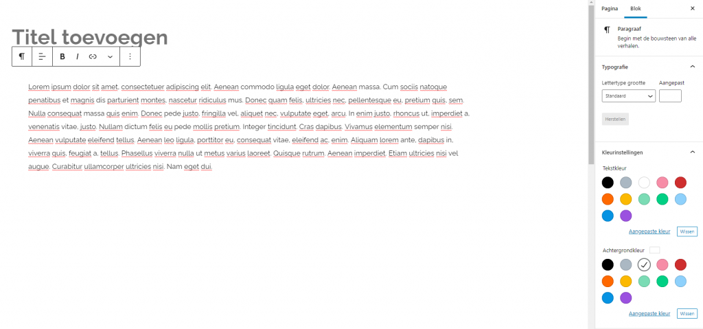 Aan de rechterkant kan je vervolgens de typografie- en kleurinstellingen doen.