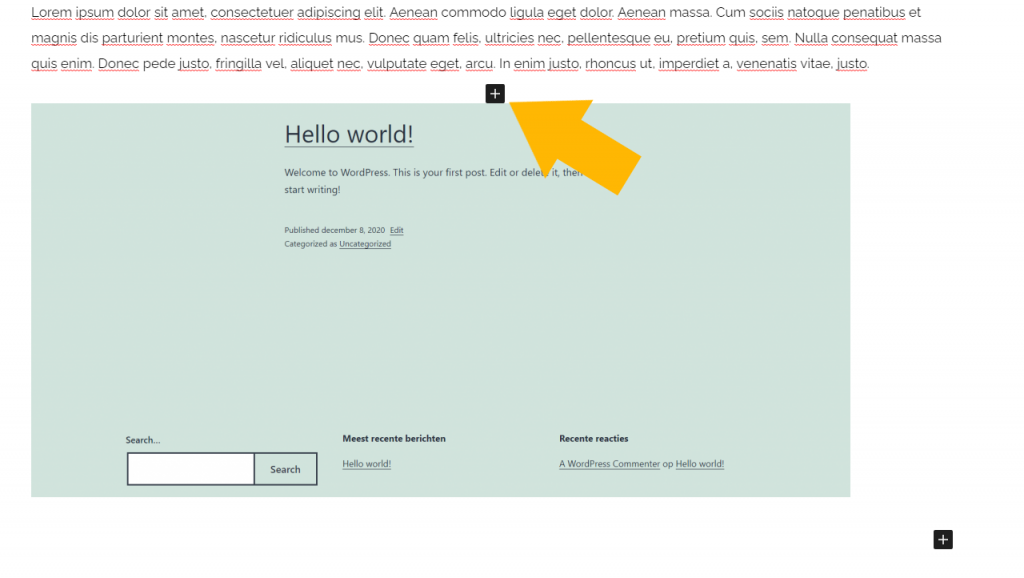 Je selecteert dan de bovenste blok en klikt op het plusje dat verschijnt tussen de twee blokken.