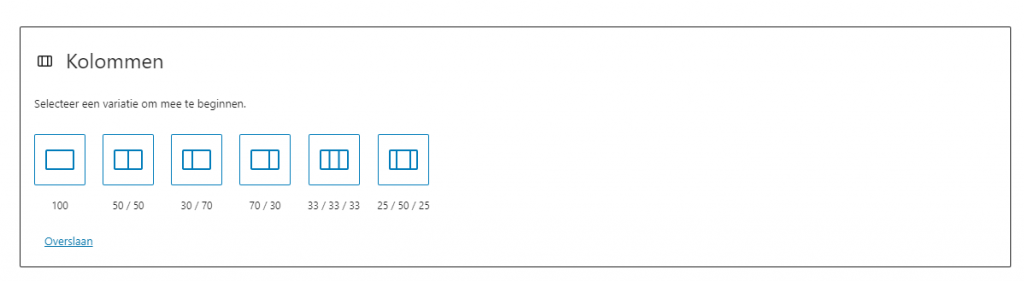 Met behulp van dit blok kan je een blok in meerdere kolommen indelen.
