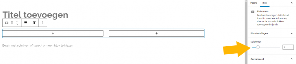 Zodra je het blok met kolommen selecteert kan je de instellingen van de kolommen aan de rechterkant aanpassen, bijvoorbeeld door het aantal kolommen te veranderen.