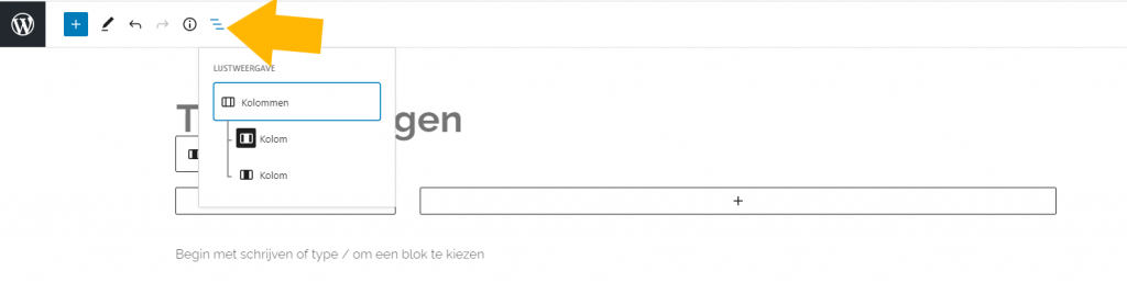 Stel je wilt een tekst weergeven in twee kolommen. Dan kan je eerst het blok met kolommen toevoegen en daarna in de kolommen een blok met paragraaf.