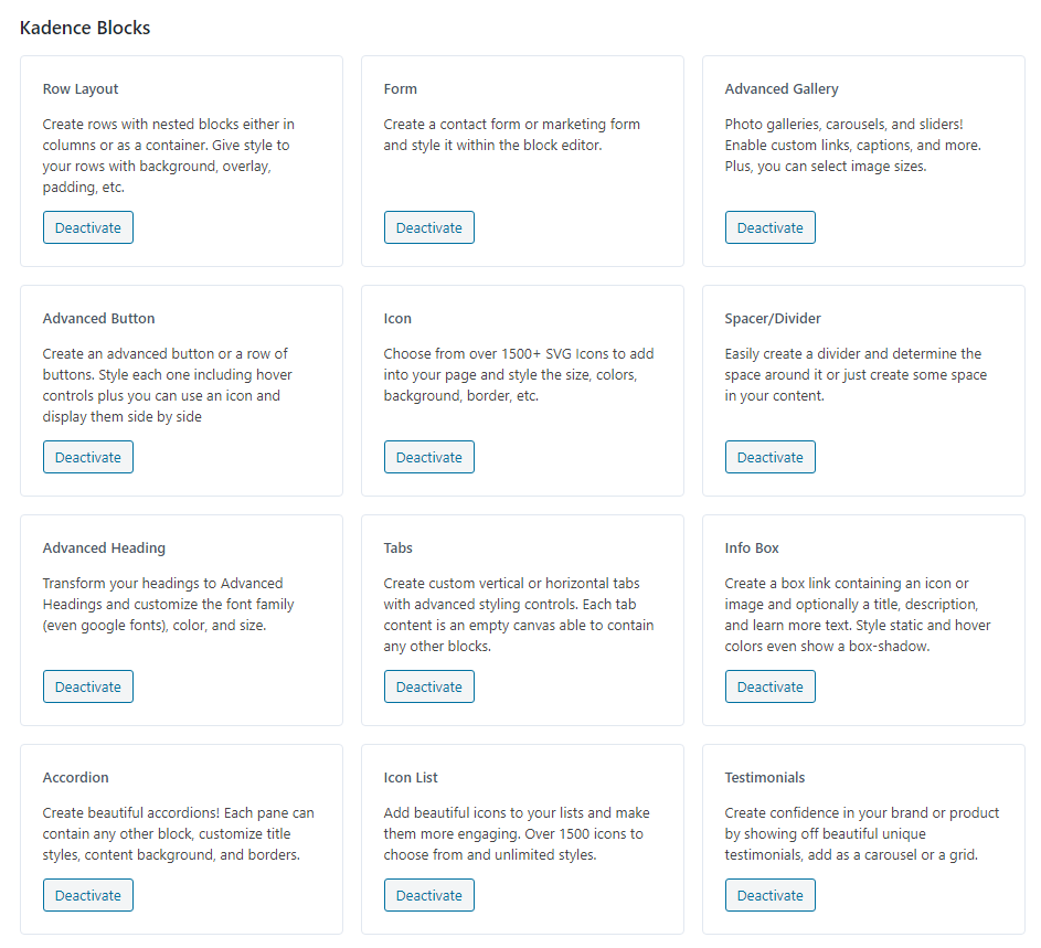 Een andere populaire plugin is Kadence Blocks. Deze plugin is wat uitgebreider dan de vorige 2 opties. Zo biedt het 12 extra blokken toe: