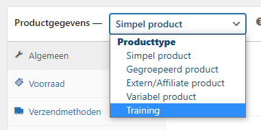 Van belang hierbij is dat je naar beneden scrolt naar Productgegevens en hierbij Training selecteert: