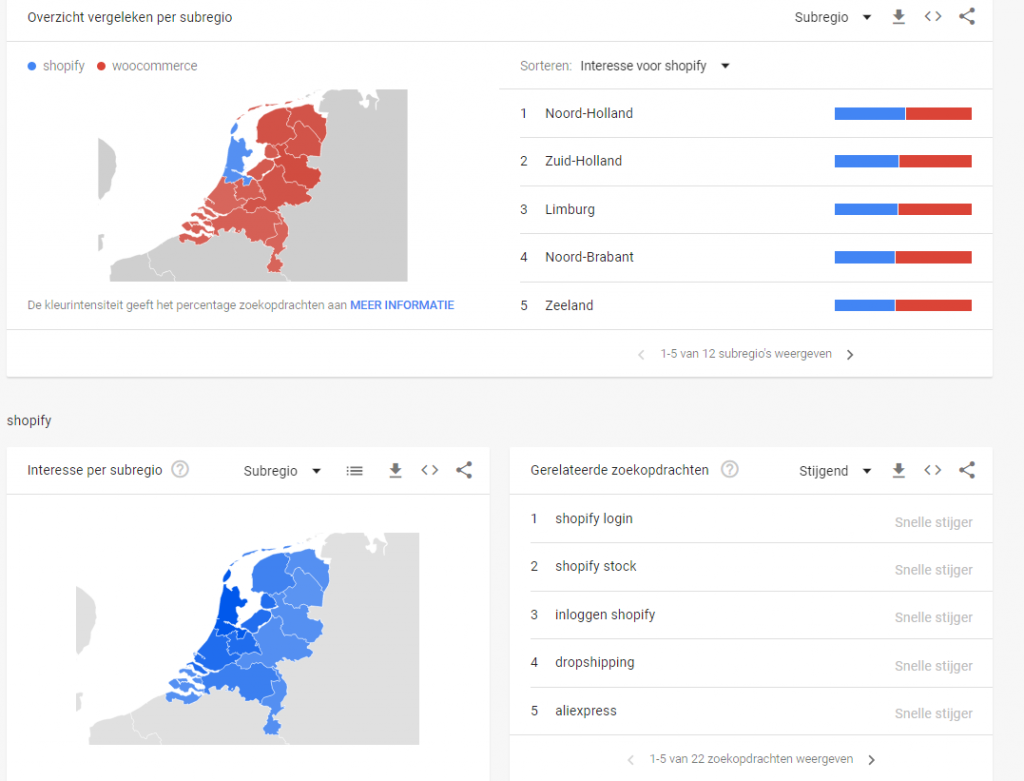 Google Trends kan ook waardevolle informatie opleveren zoals in welke seizoenen er op bepaalde zoekwoorden wordt gezocht, informatie over regio’s, etc.