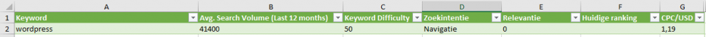 Het meeste werk van het zoekwoordonderzoek zit er nu op. Je hebt een lijst met allemaal zoekwoorden en je hebt data waarmee je deze kan filteren.