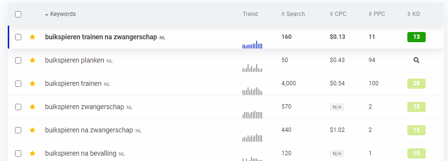 Echter als je bij elkaar optelt hoe vaak er op ”Buikspieren trainen na zwangerschap”, ”buikspieren zwangerschap”, ” buikspieren na zwangerschap” en ”buikspieren na bevalling” wordt gezocht kom je al op 1290x per maand.